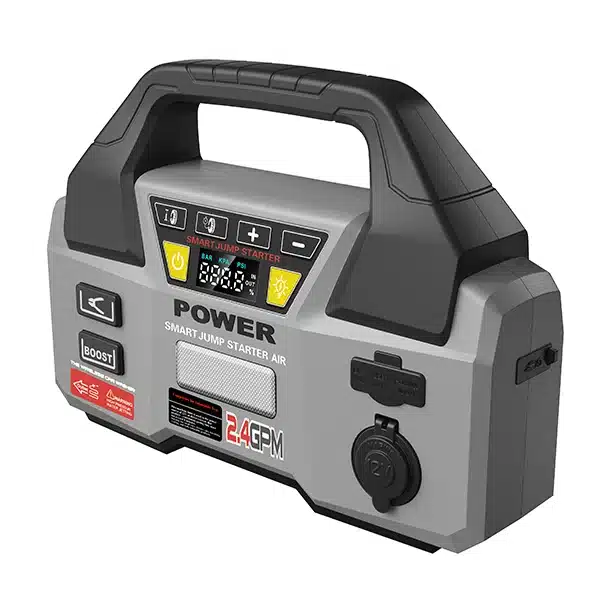 The 19200mAh Heavy Duty Car Jump Starter with Tire Inflator is built for power and reliability. With a 1000A start current and 2000A peak current, it can easily jump start petrol engines up to 8.0L and diesel engines up to 6.0L, making it the ideal emergency tool for SUVs, trucks, RVs, and heavy-duty vehicles. Equipped with a 150PSI high-pressure air compressor, multiple DC/USB outputs, and a bright LED emergency light, this all-in-one device ensures you are never stranded on the road.Why Choose This Model?